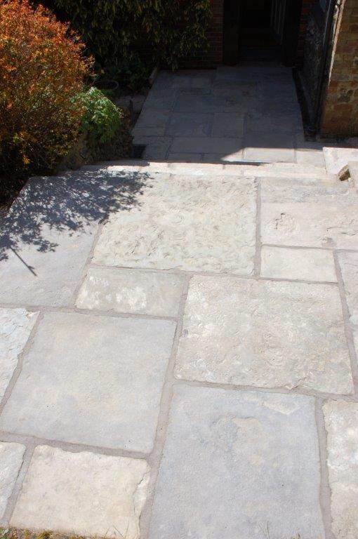 In our case, we saw and selected Cathedral Limestone for about 50m2 of outside terracing to be laid around our new extension. In addition, following my wife’s keen demand for the very best in old English stone for the front steps and front door entrance paths to our old (17th century) house – Andrew patiently offered us his truly exceptional old and reclaimed York stone for consideration.