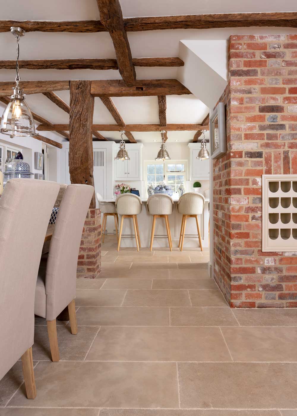Rustic beams, a neutral colour palette and of course, a natural stone floor, allow the traditional beauty of this home to shine through – the epitome of barn conversion inspiration.Â