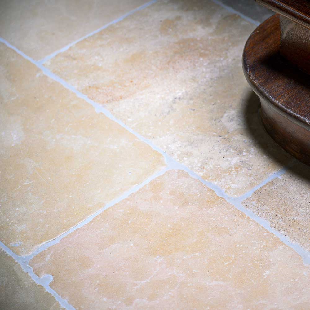 Our Antiqued French limestone is subtly aged with buff and beige tones throughout – perfect for bringing warmth to the large open areas on the lower ground floor of the house. This antiqued stone is also very hard and extremely durable, allowing it to easily withstand the muddy boots, paws and everything else life in the countryside can throw at it.
