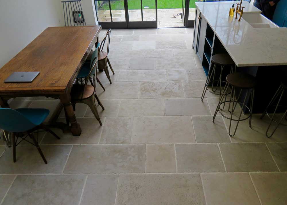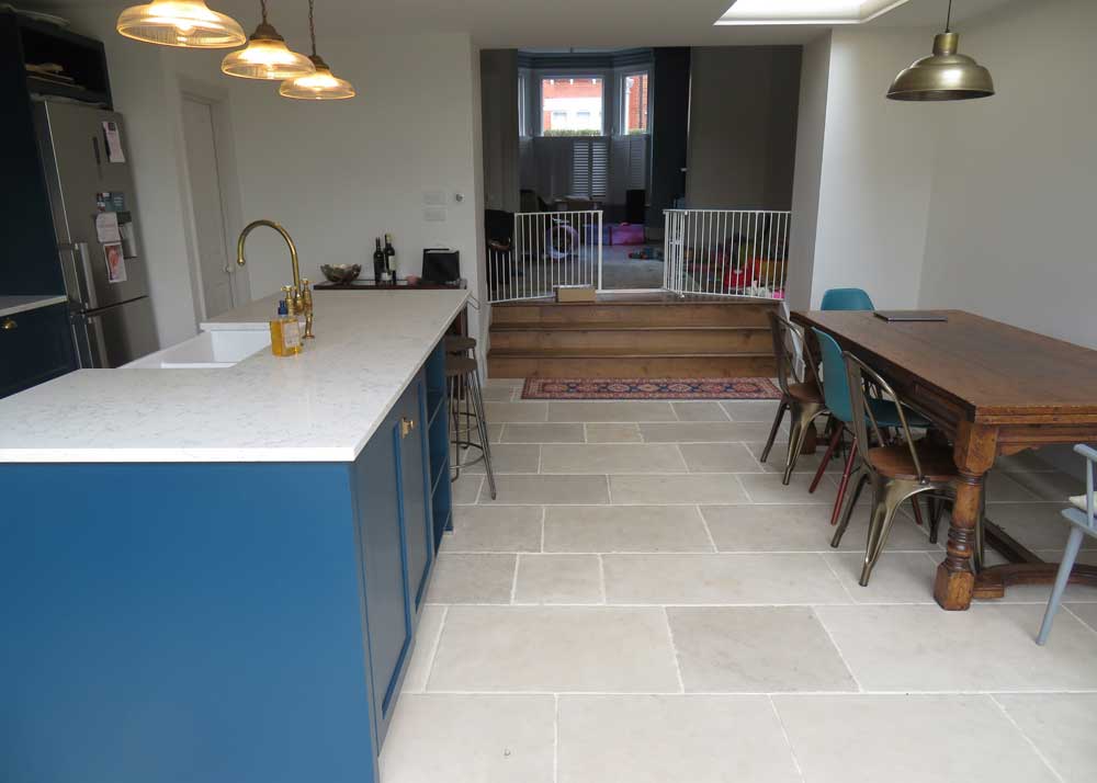 Limestone tiles proving popular for a stone kitchen floor