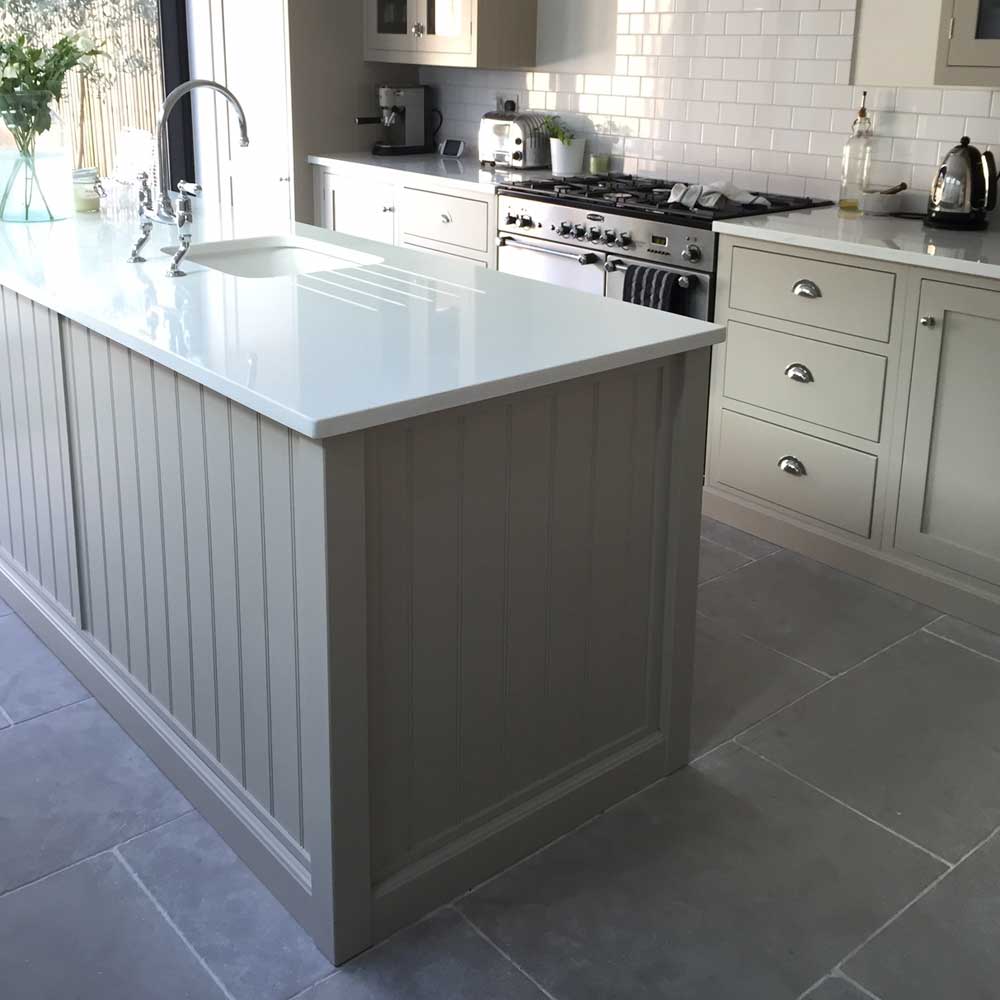 Limestone tiles are a popular choice for a stone kitchen floor with the rustic charm of this grey limestone demonstrating exactly why.