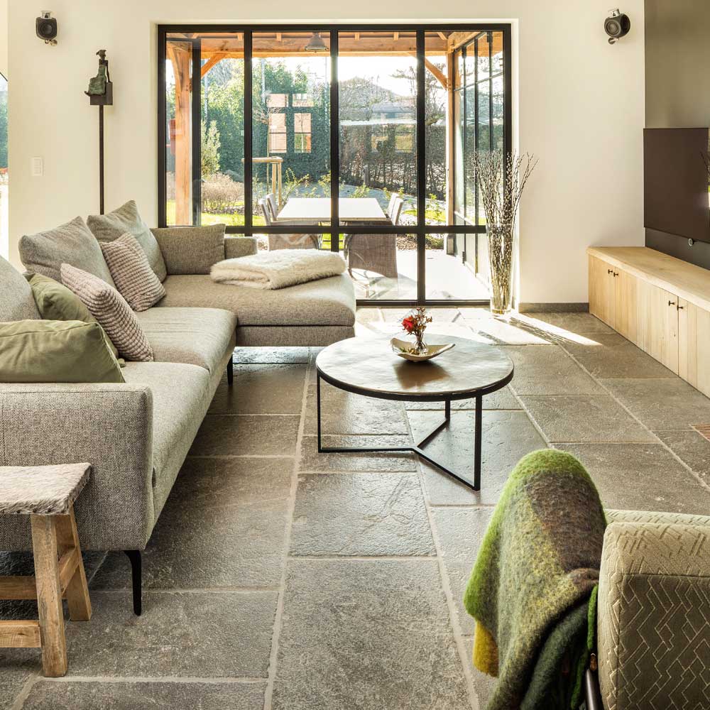 Cloudy movement can be seen in these cool grey tiles that have been subtly aged to soften the edges and create character on their surface. While not as rustic as some of our other antiqued stone flooring options, this limestone is a popular choice for many different style properties thanks to its neutral tones, consistent colouring and quiet characteristics.